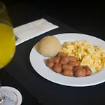 Un desayuno bastante bueno con un montón de opciones, un lugar fantástico y muy limpio. Está a un corto paseo de una playa de arena. Está solo a 1 km, así que la Plaza Mayor es fácil de alcanzar. Una vista impresionante al mar. Servicio excepcional y hay un restaurante informal en el lugar.